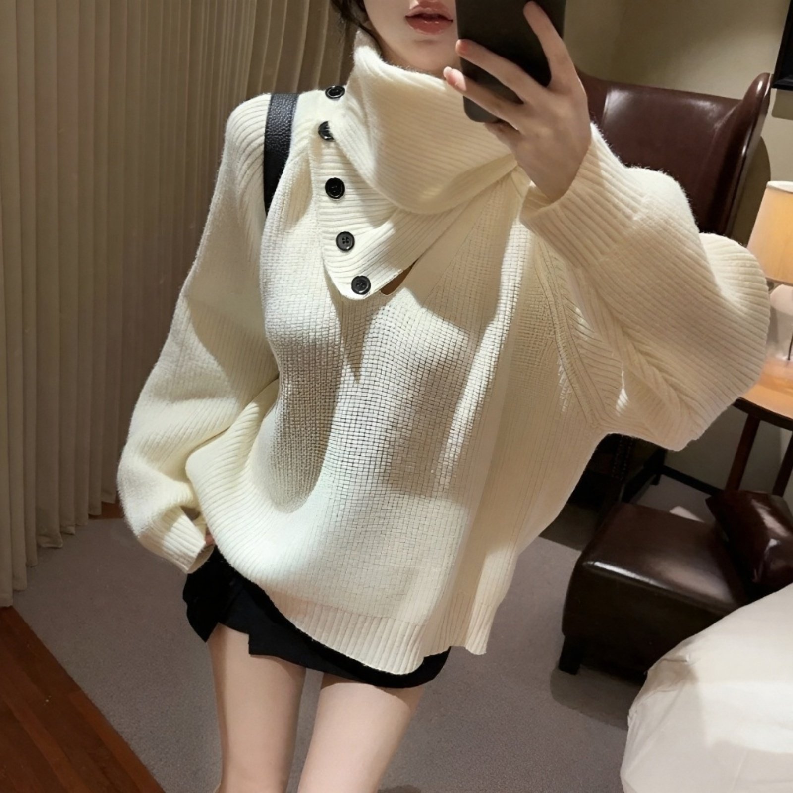 2025年新作 取り外し可能なスカーフ付きVネックセーター レディース 秋冬 ゆったりとしたハイエンドニットトップス